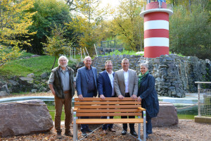 Gemeinsam mit Vertreterinnen und Vertretern der Kreisstadt Neunkirchen und der Sparkasse Neunkirchen als Projektpartner des Klima Projekts Neunkirchen hat Vorstand Marcel Dubois am Dienstag, 22. Oktober, eine Ruhebank an den Neunkircher Zoo übergeben. Zoodirektor Dr. Norbert Fritsch hat die Bank entgegengenommen, die ihren Platz in der neugestalteten Brillenpinguin-Anlage gefunden hat.