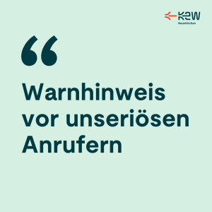 Nach Hinweisen unserer Kundinnen und Kunden gibt es aktuell verstärkt Anrufe von Personen, die sich als Mitarbeiter des eigenen Energieversorgers (KEW) ausgeben und Ihre Zählerstände sowie Zählernummern für die bald beginnende Jahresverbrauchsabrechnung abfragen.